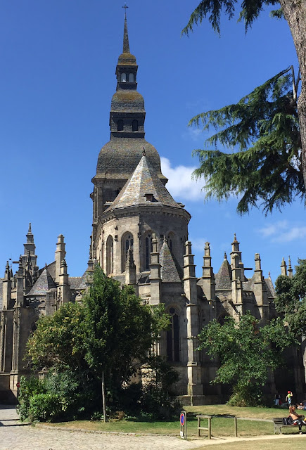 Many people have heard of the walled city of Saint-Malo but like me, few know of Dinan, although the latter's history is much older. I myself had only become aware of Saint-Malo recently, thanks to reading the wonderful novel All the Light We Cannot See, which is largely set there (if there is a novel published in the past 5 years that would make a better movie I'd like to read it). After reading the book I was interested in visiting Saint-Malo, which was established by corsairs and made wealthy on the back of the slave trade. Largely destroyed by American bombs in World War II, Saint-Malo was rebuilt exactly as it was before the war by German prisoners. It was quite interesting and we had a fantastic meal there at a waterfront restaurant with Raymond - one of Michel's best friends from his childhood in Val d'Ize and his wife Jocelyn - whom Michel also knew from school.